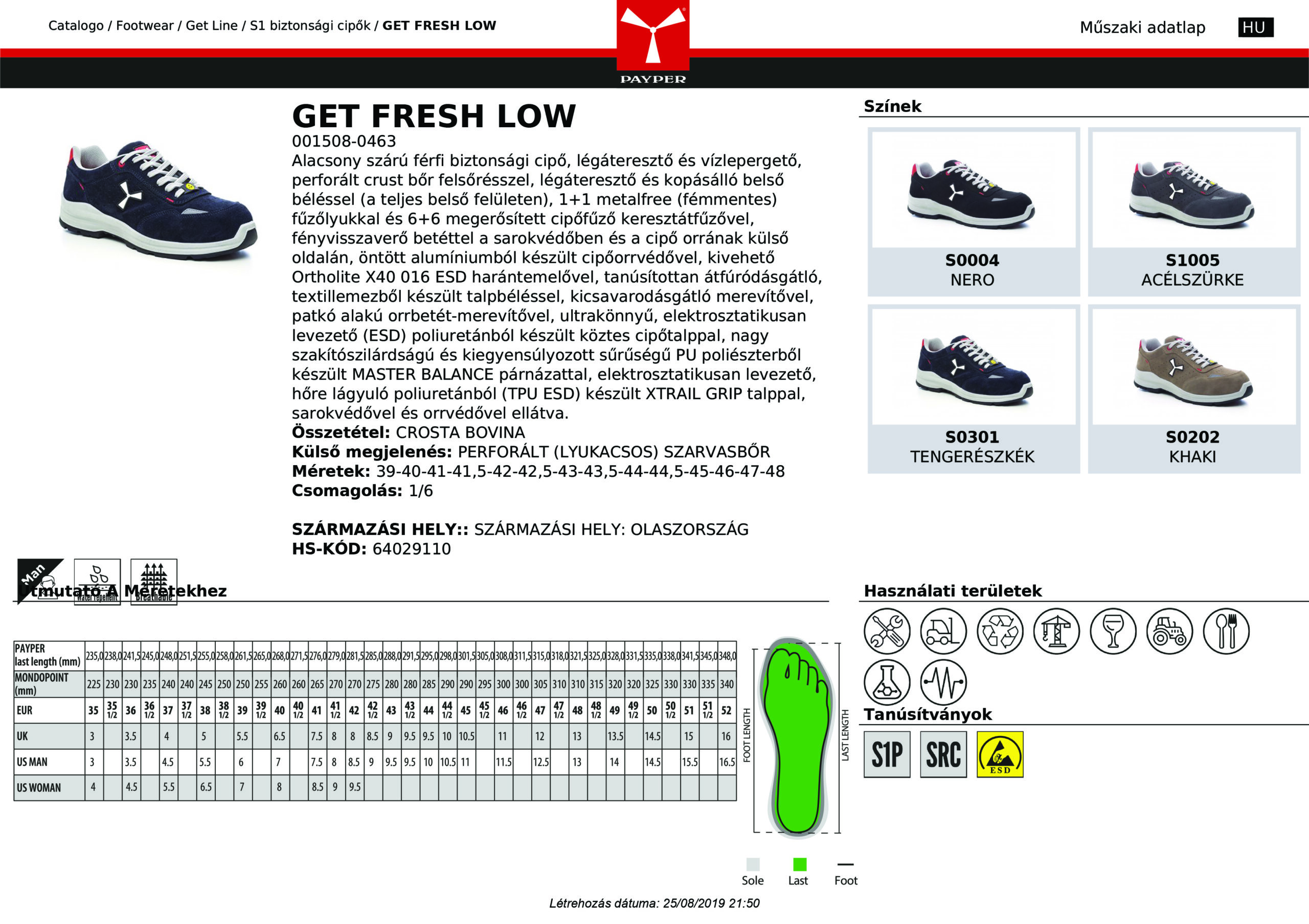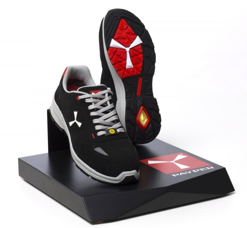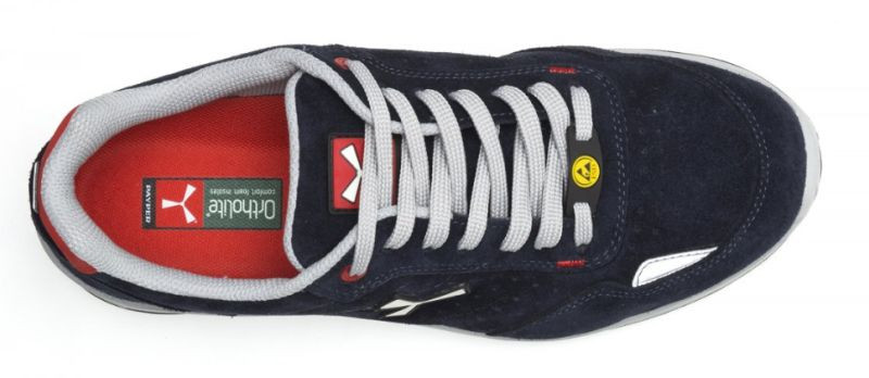 Alacsony szárú férfi biztonsági cipő, légáteresztő és vízlepergető, perforált crust bőr felsőrésszel, légáteresztő és kopásálló belső béléssel (a teljes belső felületen), 1+1 metalfree (fémmentes) fűzőlyukkal és 6+6 megerősített cipőfűző keresztátfűzővel, fényvisszaverő betéttel a sarokvédőben és a cipő orrának külső oldalán, öntött alumíniumból készült cipőorrvédővel, kivehető Ortholite X40 016 ESD harántemelővel, tanúsítottan átfúródásgátló, textillemezből készült talpbéléssel, kicsavarodásgátló merevítővel, patkó alakú orrbetét-merevítővel, ultrakönnyű, elektrosztatikusan levezető (ESD) poliuretánból készült köztes cipőtalppal, nagy szakítószilárdságú és kiegyensúlyozott sűrűségű PU poliészterből készült MASTER BALANCE párnázattal, elektrosztatikusan levezető, hőre lágyuló poliuretánból (TPU ESD) készült XTRAIL GRIP talppal, sarokvédővel és orrvédővel ellátva.