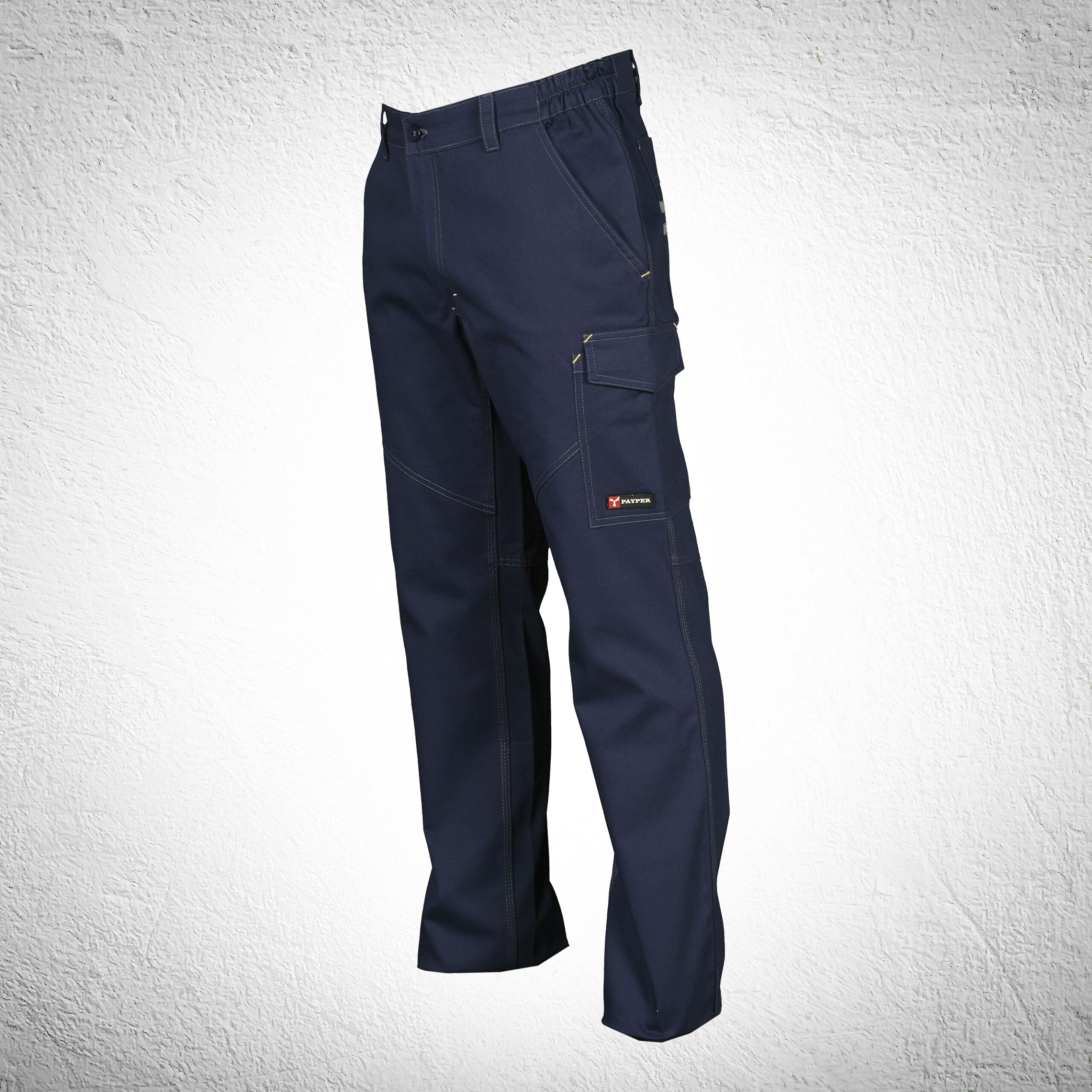 Minden évszakra ajánlott uniszex munkás nadrág. Kontrasztos varrásokkal és betétekkel, rugalmas övrésszel, öv bujtatókkal. Zipzáras slicc. A kritikus helyeken végig tripla varrással. Két svéd zseb, bal oldalon oldalzseb, jobb oldalon mérőléc zseb, két farzseb egyike hajtókával, a másik nyitott, fényvisszaverő betéttel.