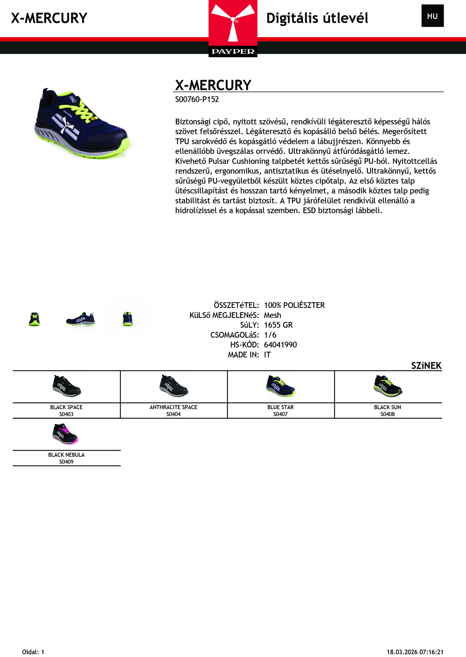szövet felsőrésznek, amely anélkül biztosítja a légáteresztést, hogy csökkentené az ellenállást. A kombináció más anyagokkal, például mikroszállal robusztusabbá teszi a szerkezetet, így nagyobb védelmet és tartósságot biztosít. Az ergonomikus kialakítás tökéletesen illeszkedik a lábfejhez és biztosítja a mozgás szabadságát, még a legintenzívebb napokon is csökkentve a fáradtságot. Az X-MERCURY ideális választás azok számára, akik biztonságos, nagy teljesítményű és rendkívül