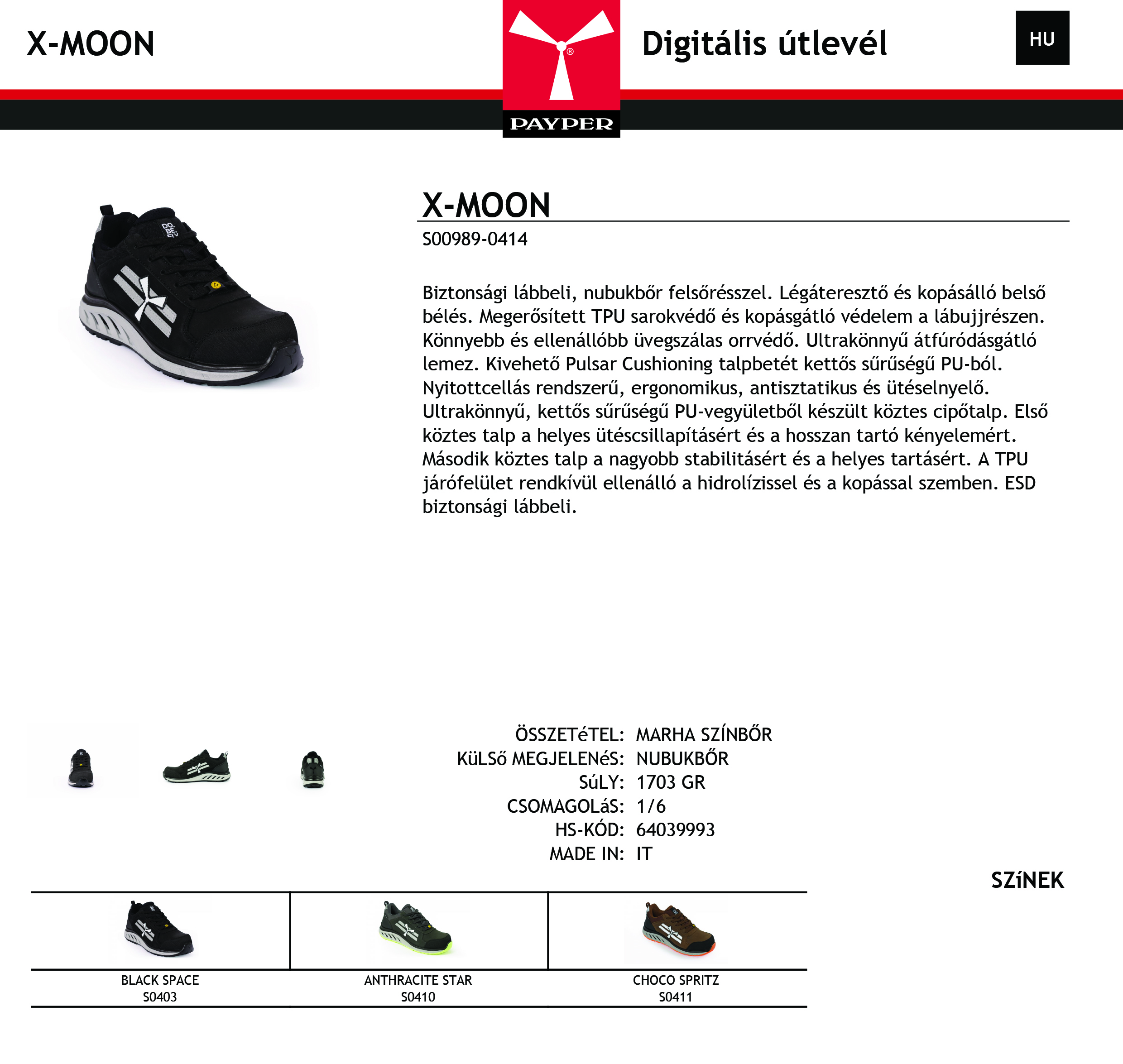 ERŐS. KÉNYELMES. TARTÓS. A finom hydro-pro nubuk felsőrész kiváló víztaszító tulajdonságokat és kiváló minőségű külsőt biztosít. A bőrrel és a TPU-val megerősített lábujjvédő nagyobb tartósságot és ütésvédelmet nyújt, míg a légáteresztő belső bélés szárazon tartja a lábat a hosszan tartókényelemért. A nem elütő színű grosgrain egy csipetnyi stílust és kifinomultságot kölcsönöz, míg a cipő oldalán található márkajelzés jellegzetes részletekkel teszi szebbé a megjelenést. Az X-MOON az esztétika és a funkcionalitás tökéletes szintézise. Tartós, elegáns és biztonságos, a mindig kifogástalan megjelenésért